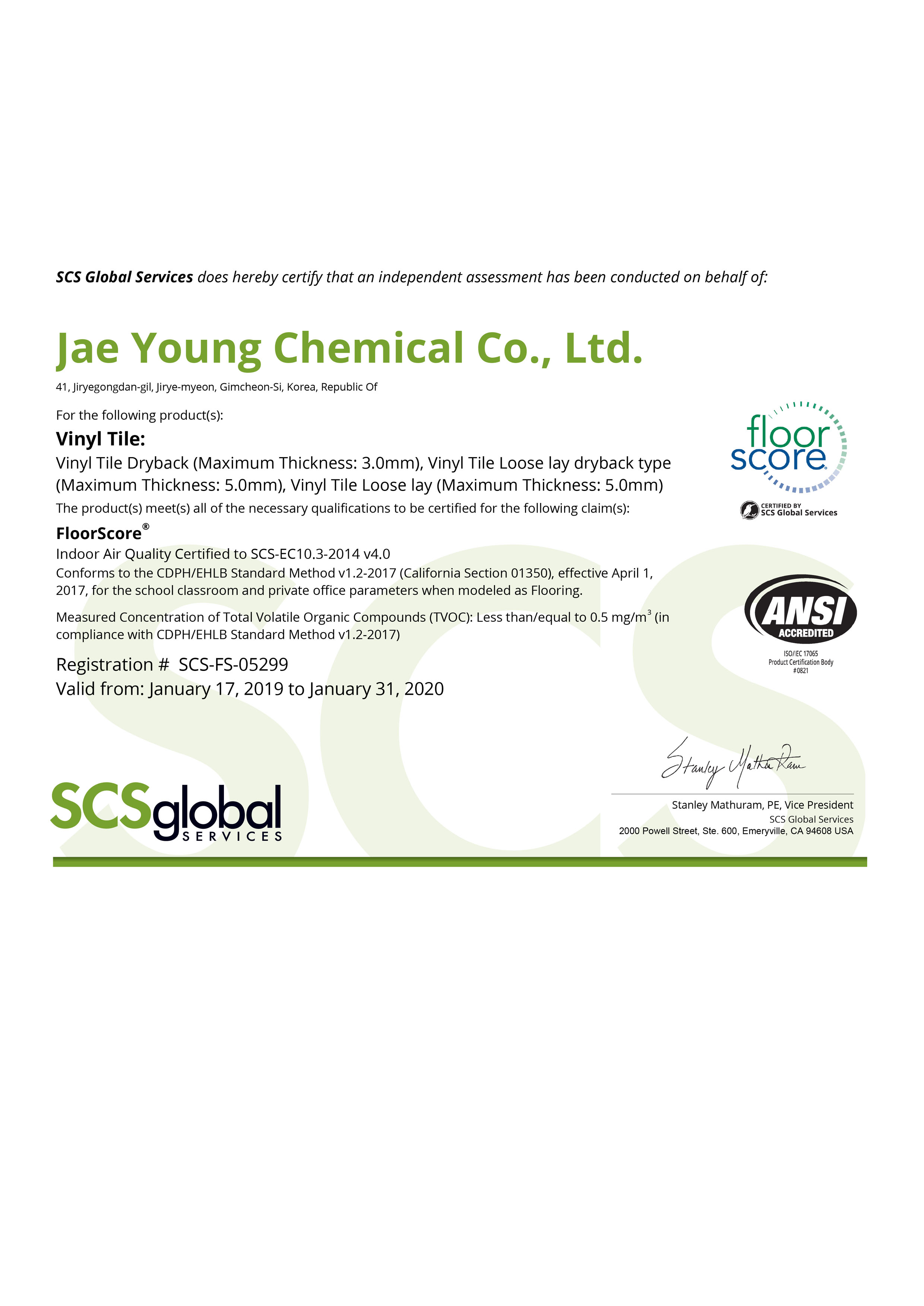 ECOLEUM Floor score Certificate 页面信息 作者 admin 查询 发布时间2020-07-01 15:01:03 본문 列表 上一篇:没有了 2020-07-01 下一篇:ISO 14001 2009 2020-07-01